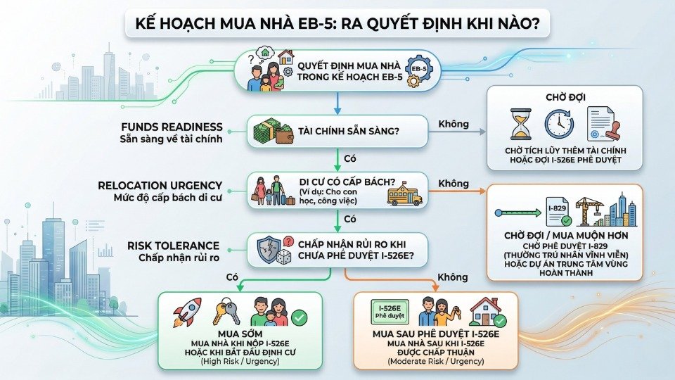 - Có, rất cấp bách: Cân nhắc phương án mua sau khi I-526E được duyệt. Đây là điểm cân bằng giữa rủi ro và nhu cầu.